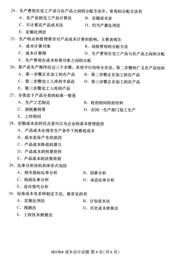 所在位置:安徽自考服務網 > 安徽自考試題題庫 > 安徽自考歷年真題 > 全國2019年10月自考00156成本會計試題