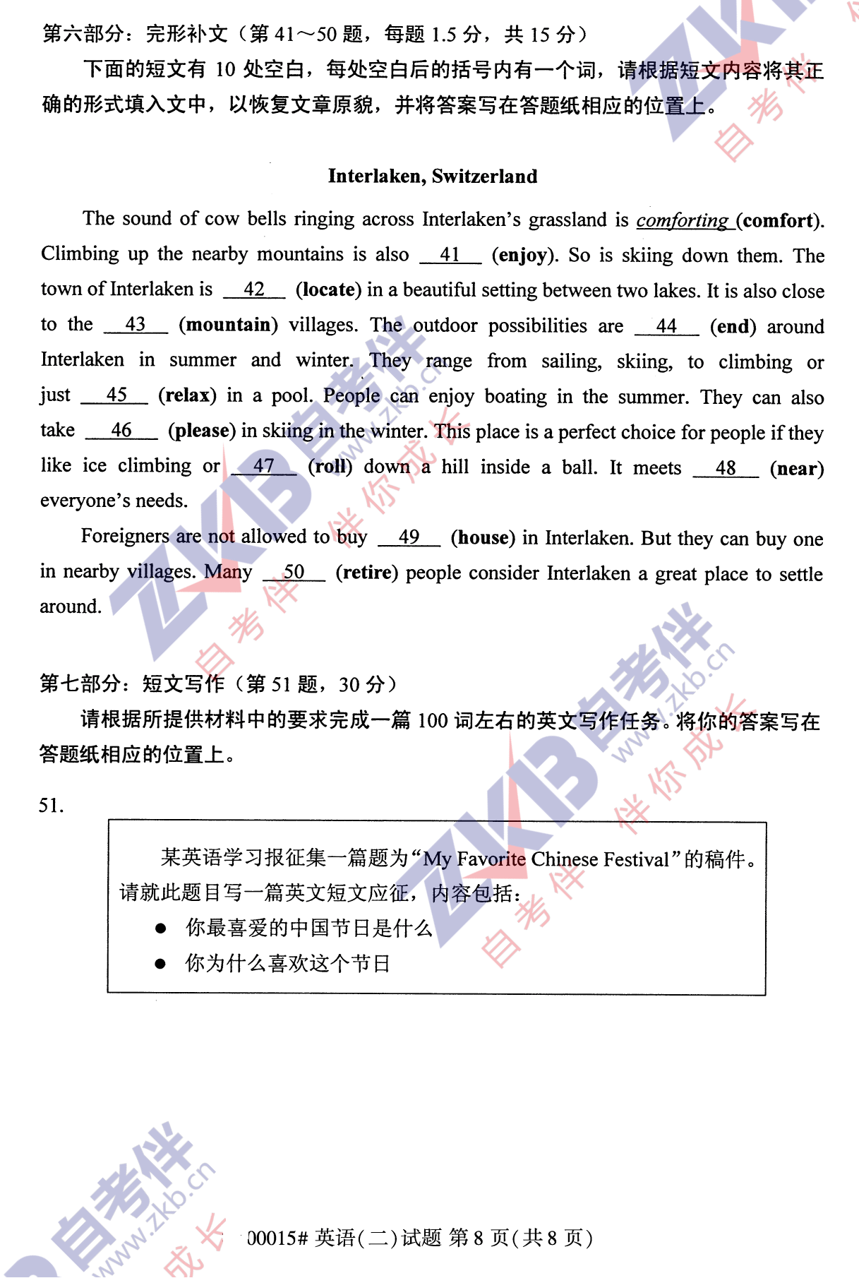 所在位置:安徽自考服務網 > 安徽自考試題題庫 > 安徽自考歷年真題 > 2021年10月安徽自考00015英語(二)學試卷