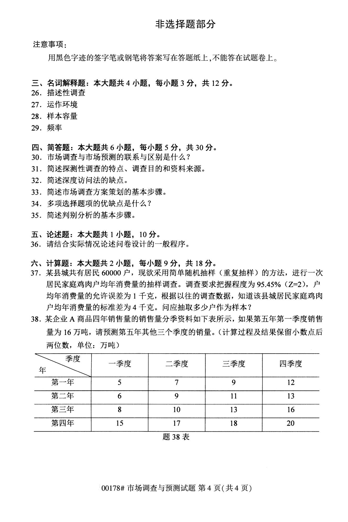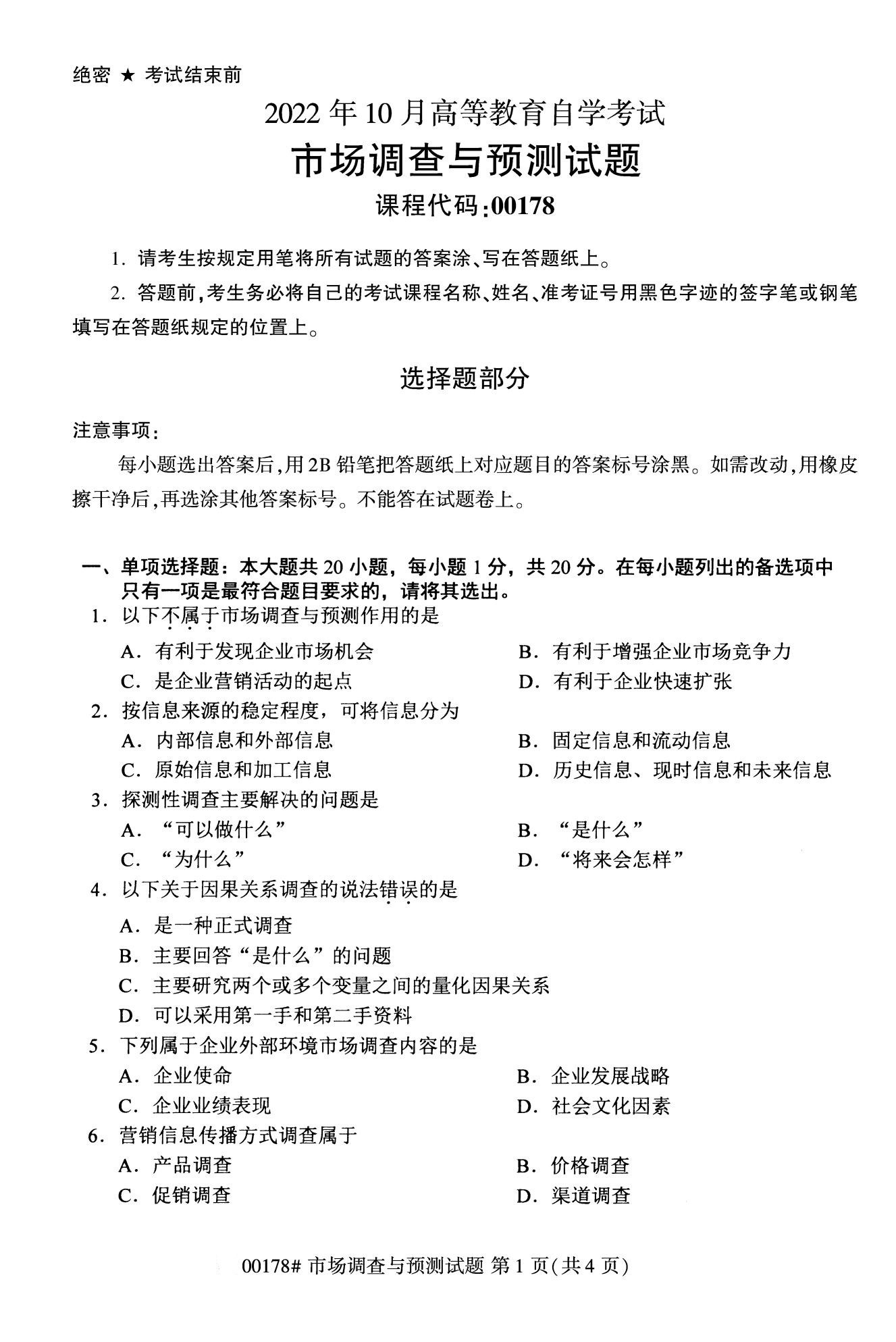 2022年10月高等教育自學考試市場調查與預測00178試題