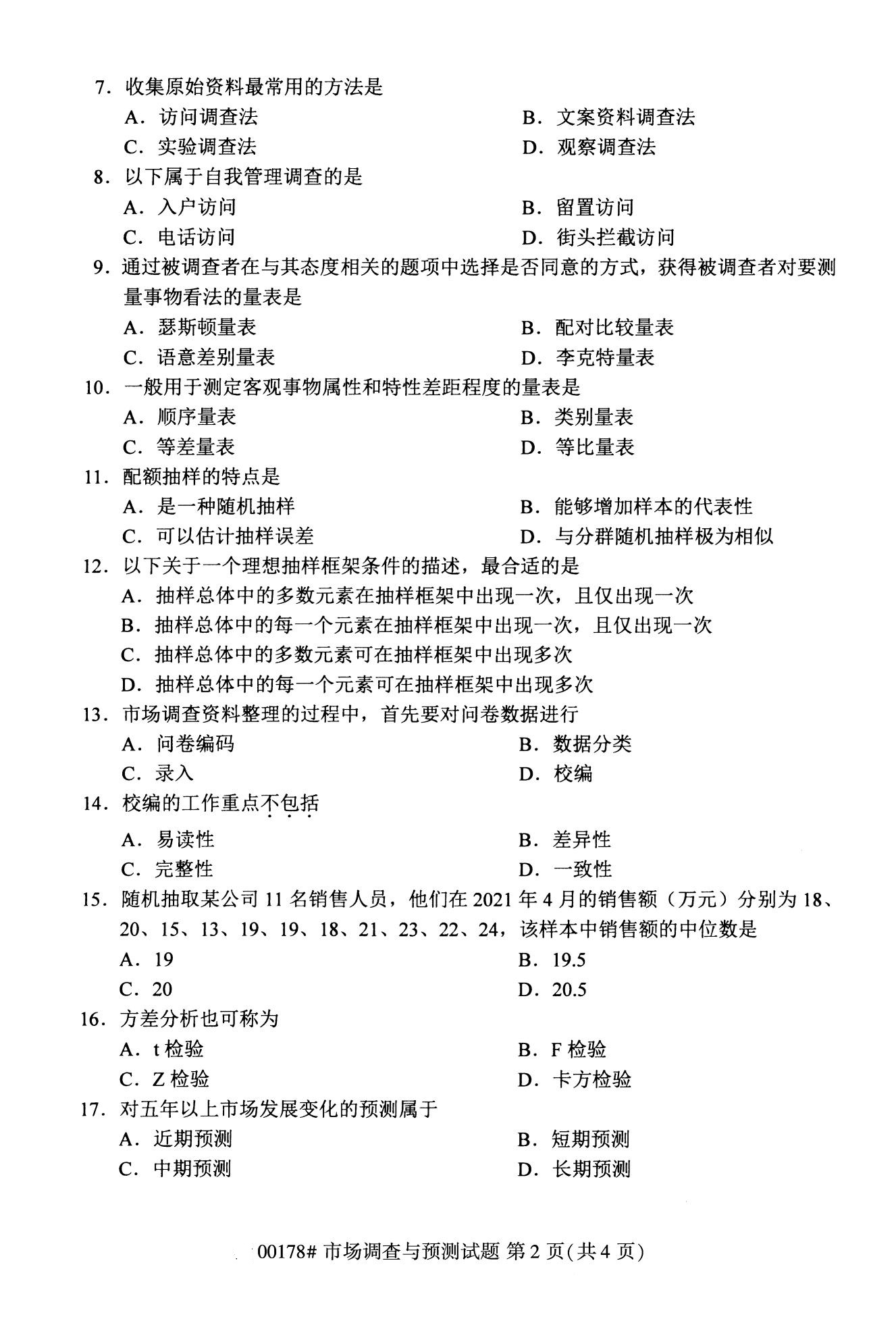 所在位置:安徽自考服務網 > 安徽自考試題題庫 > 安徽自考歷年真題 > 2022年10月高等教育自學考試市場調查與預測00178試題
