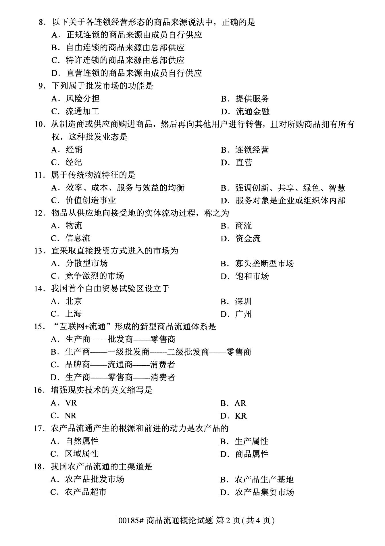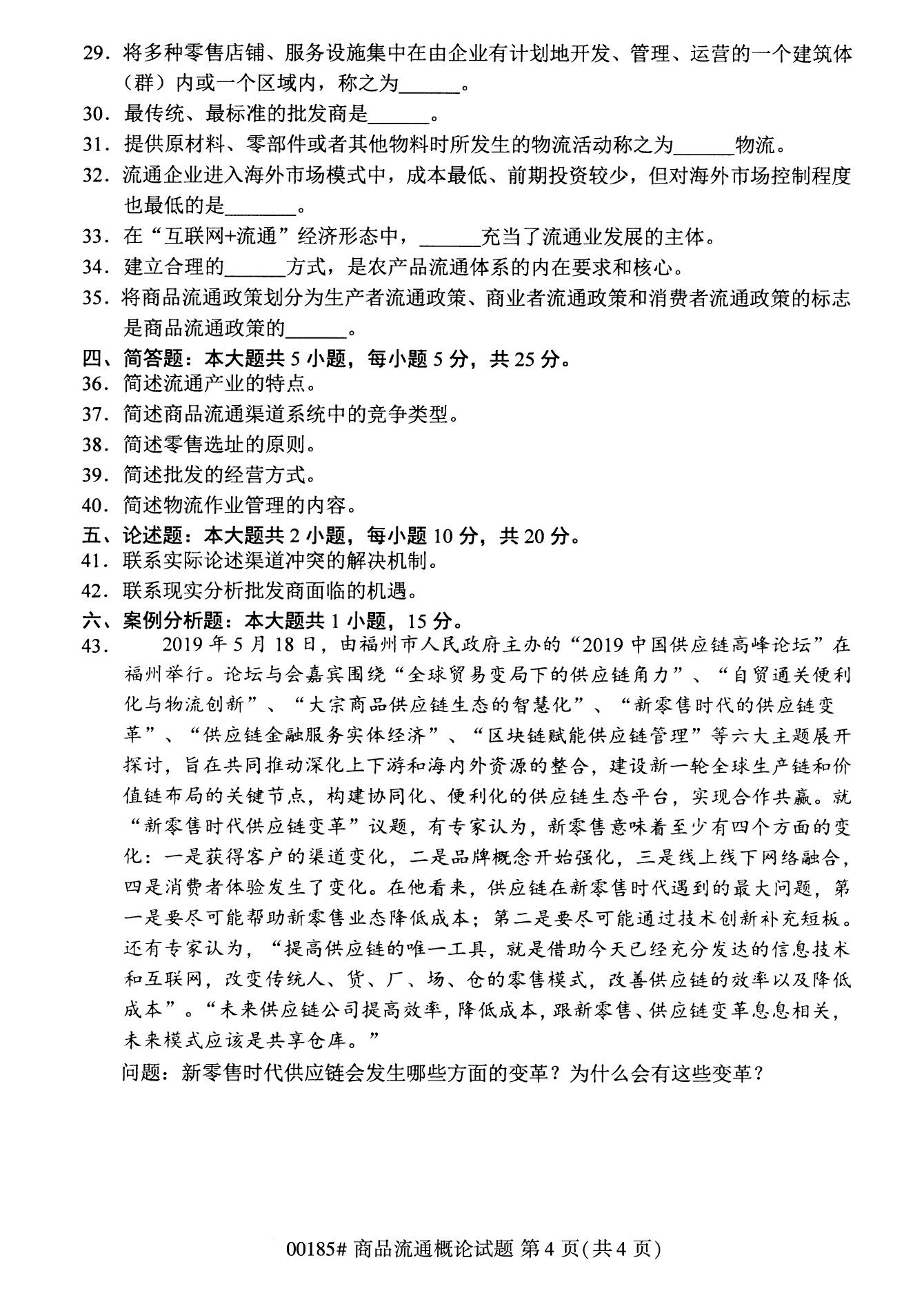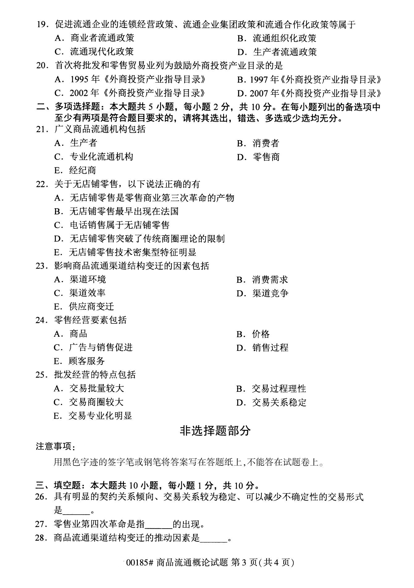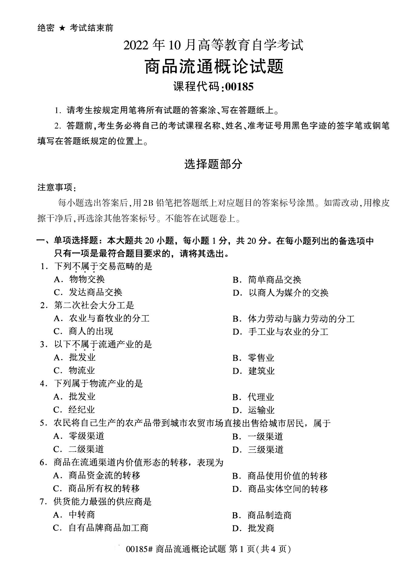 2022年10月高等教育自學考試商品流通概論00185試題
