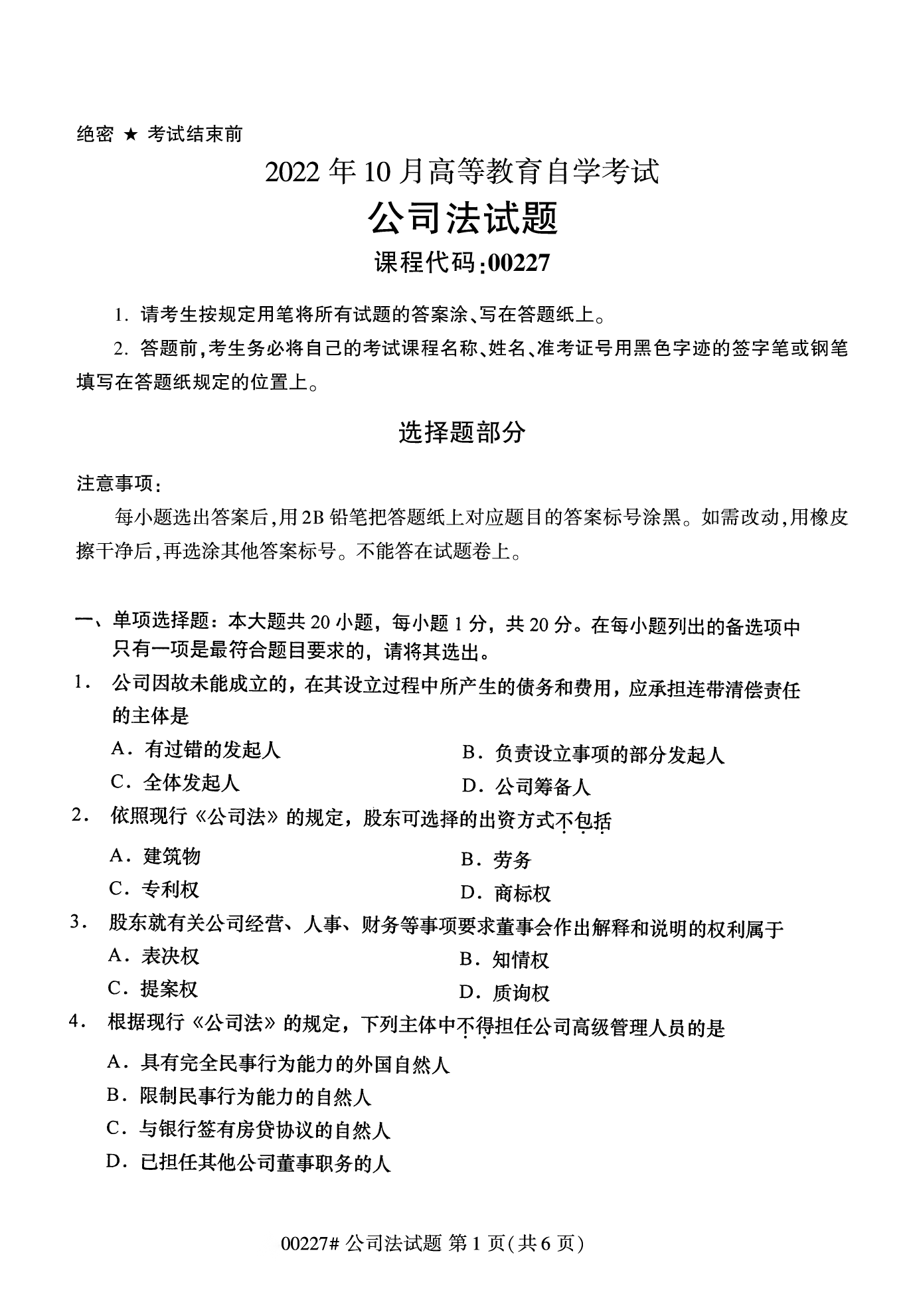 所在位置:安徽自考服務網 > 安徽自考試題題庫 > 安徽自考歷年真題 > 2022年10月高等教育自學考試公司法00227試題