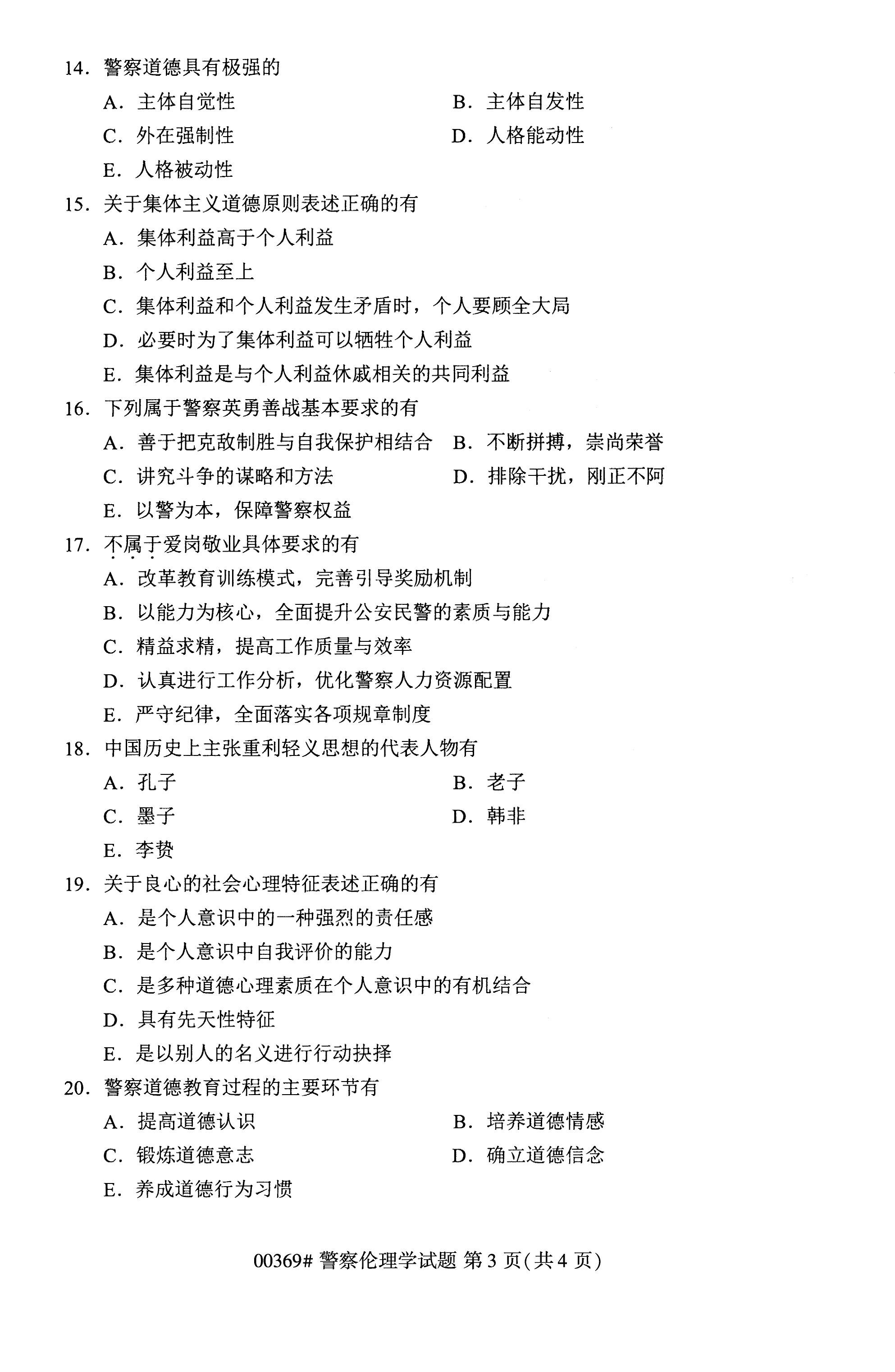 2022年10月高等教育自學(xué)考試警察倫理學(xué)00369試題