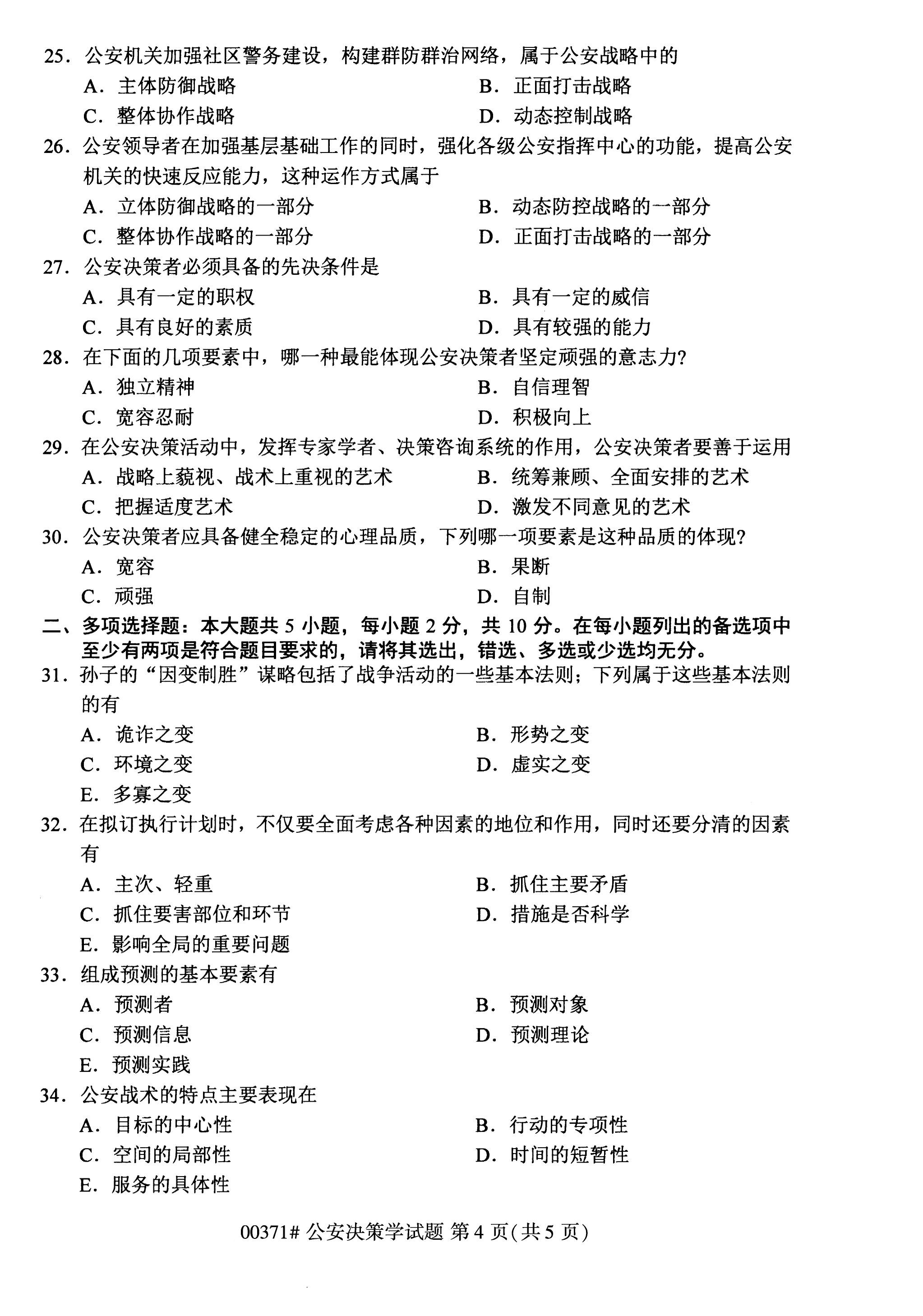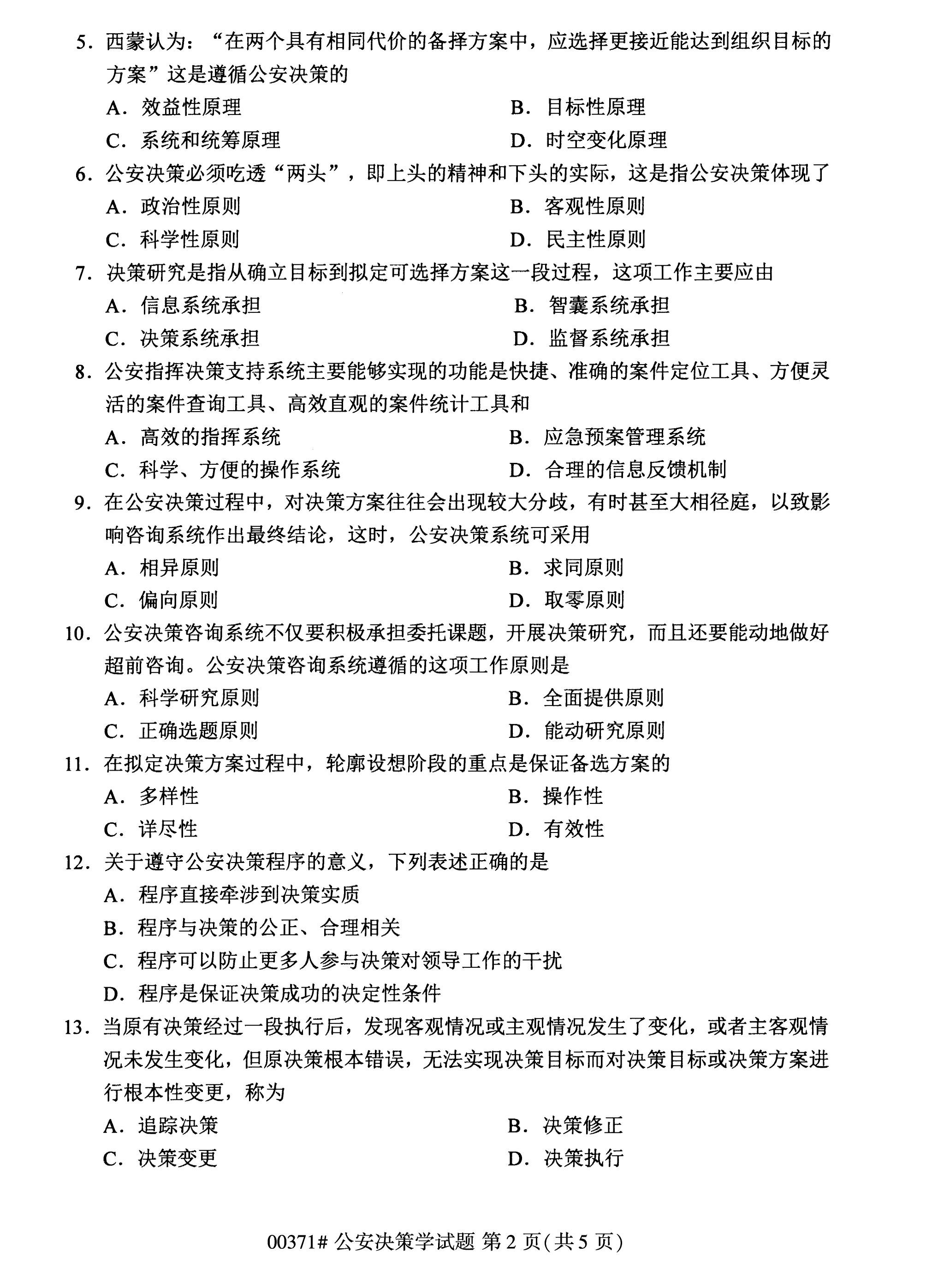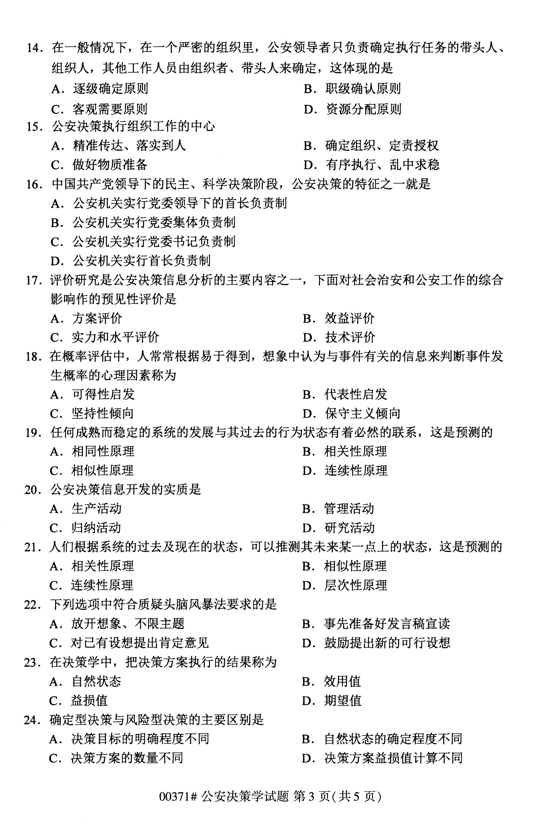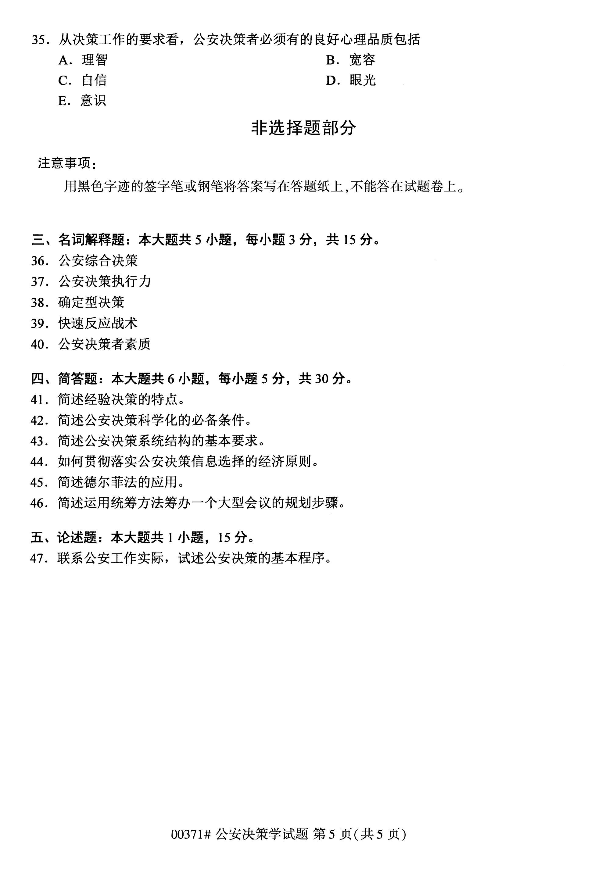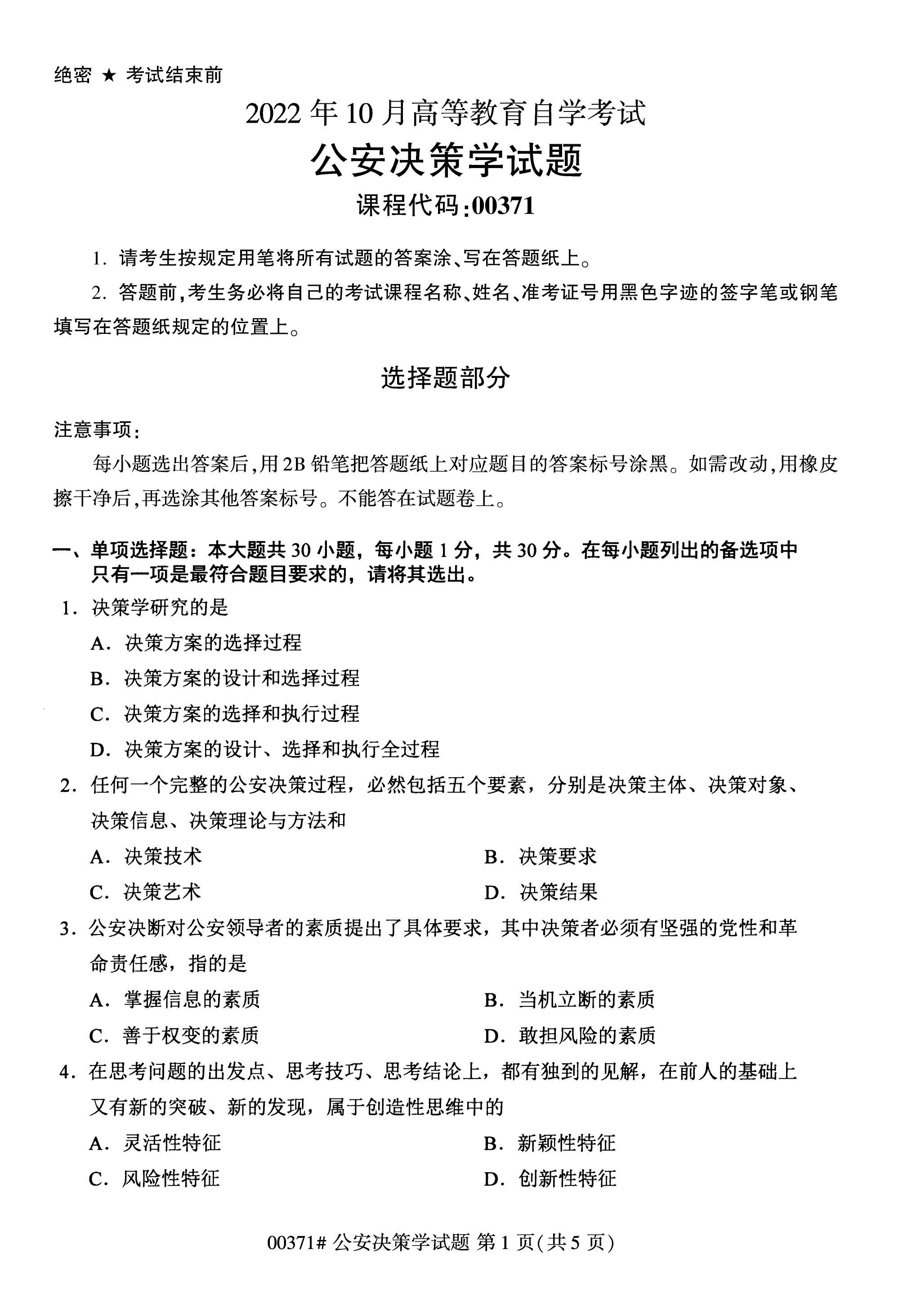 所在位置:安徽自考服務網 > 安徽自考試題題庫 > 安徽自考歷年真題 > 2022年10月高等教育自學考試公安決策學00371試題